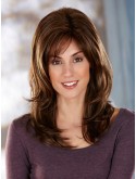 This is a shoulder length layered body waves style wig with wispy side sweeping fringe that frame your face beautifully. Made from finest Heat Friendly Synthetic fiber.